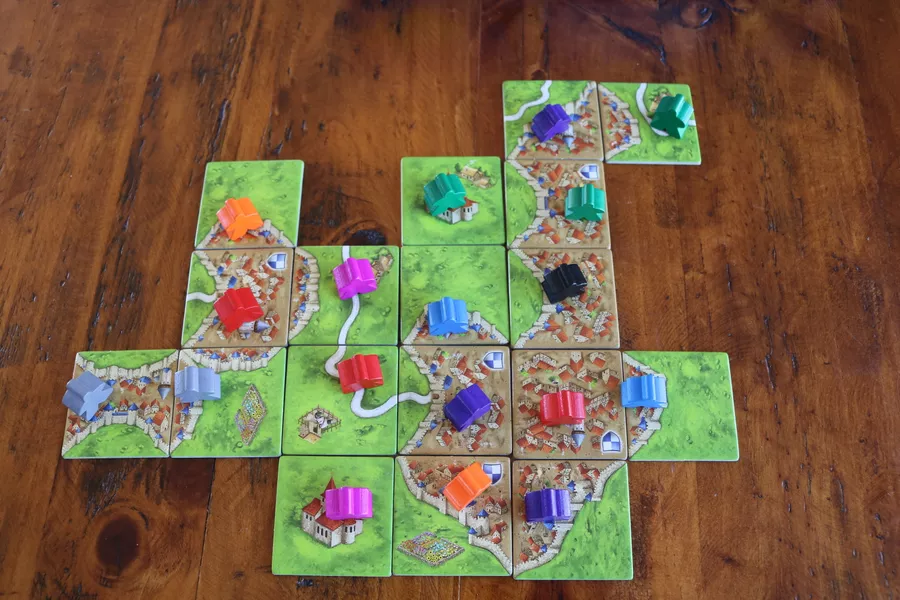 🏰 Carcassonne es un juego de colocación de losetas ambientado en la Francia medieval, donde los jugadores construyen paisajes con caminos, ciudades y monasterios. Al colocar seguidores estratégicamente, compiten por controlar territorios y sumar puntos en un tablero que cambia en cada partida.