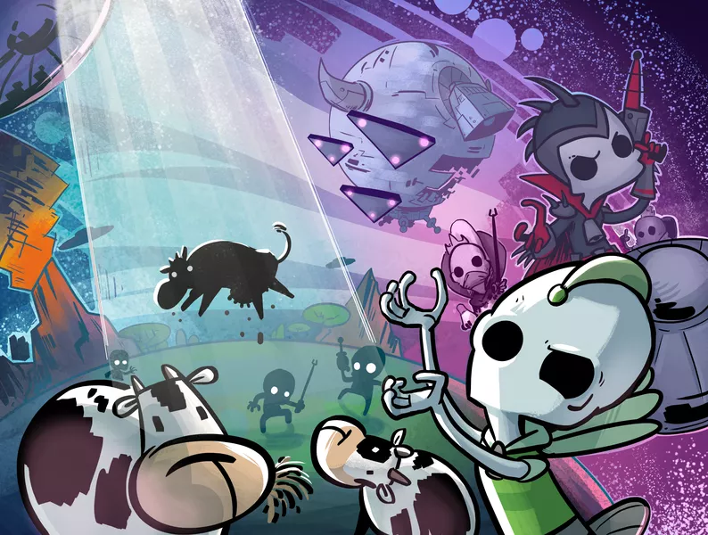 🐄👽 Cosmic Cow Collectors es un juego estratégico de deducción en el que imperios alienígenas compiten por abducir vacas en planetas secretos del universo. Los jugadores colocan unidades ocultas, invaden territorios rivales y protegen sus coordenadas favoritas, usando memoria, engaño y observación para dominar el cosmos bovino. Ideal para 2 a 4 jugadores, con partidas rápidas, cómicas y llenas de tensión espacial.